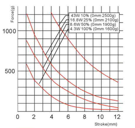 縱向:代表電磁鐵在對應行程時的力量   單位為克(g