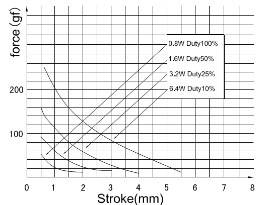 縱向:代表電磁鐵在對(duì)應(yīng)行程時(shí)的力量 單位為克(g)